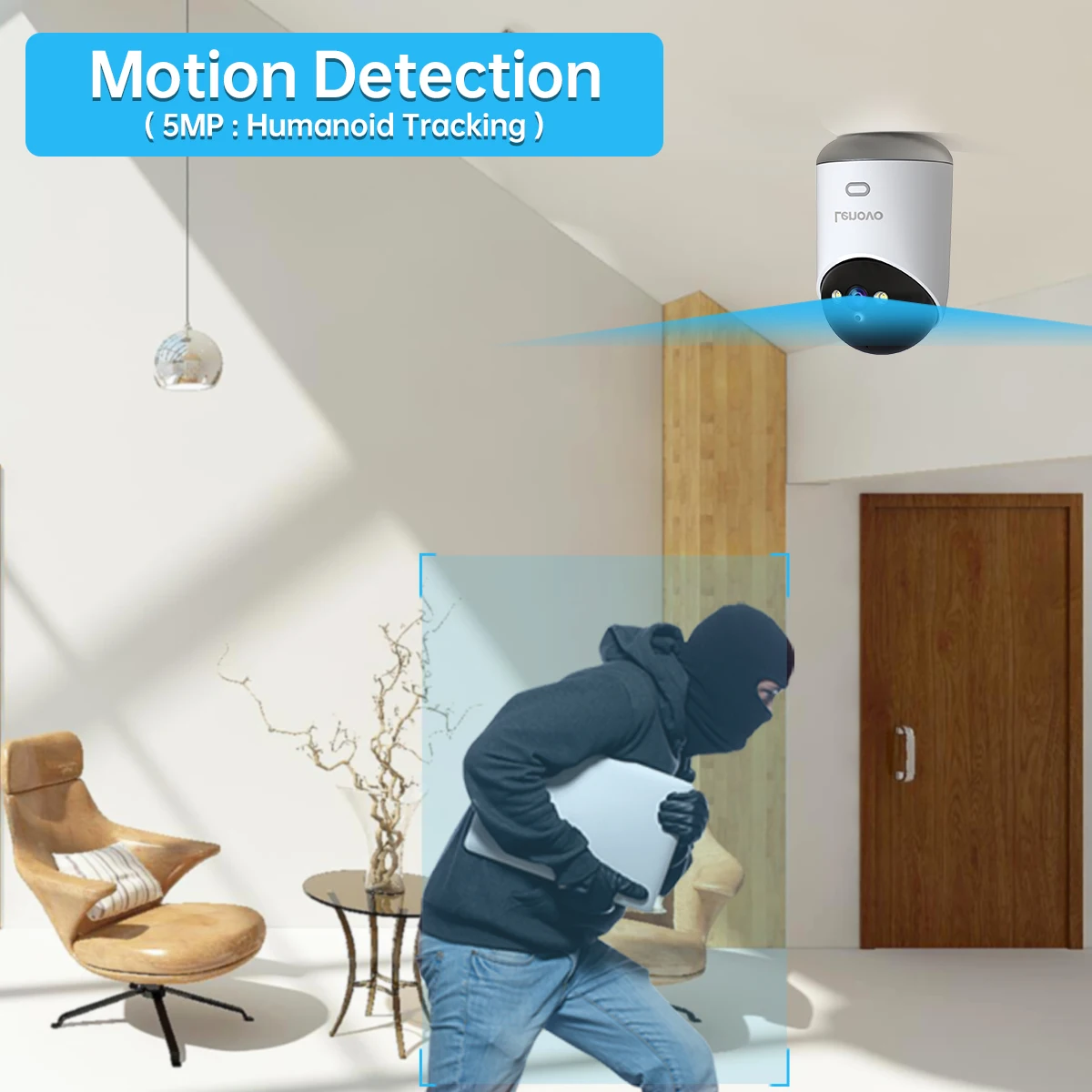 • Motion Detection Smart Alert&Horizontally Auto Tracking,support movement tracking,push notification, siren alarm,DIY alert voice and alarm bell.