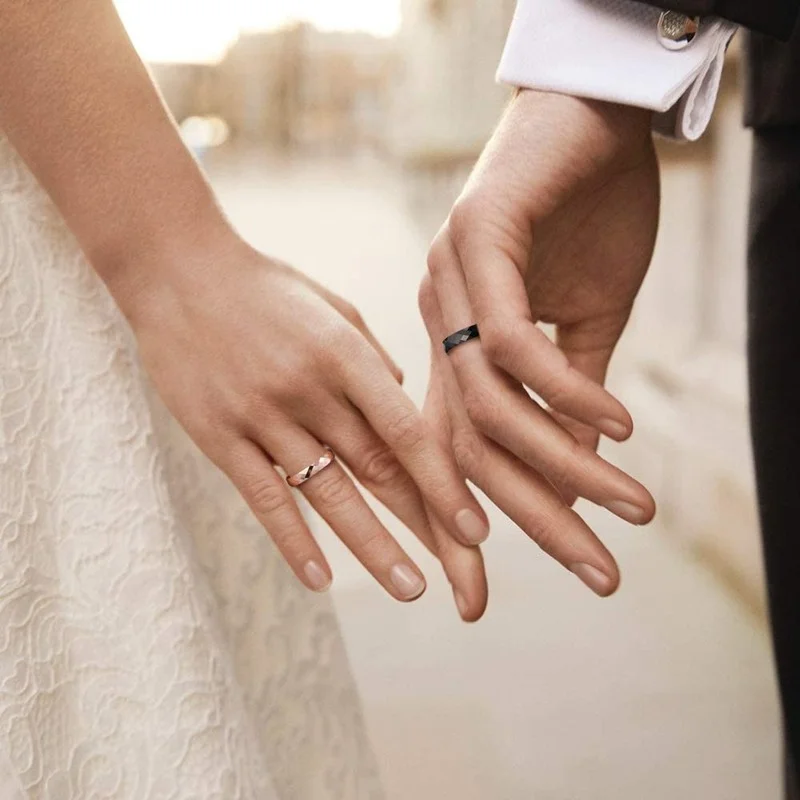 - Model Number: 4mm Multi-Faceted Tungsten Wedding Rings Rose Gold/Black